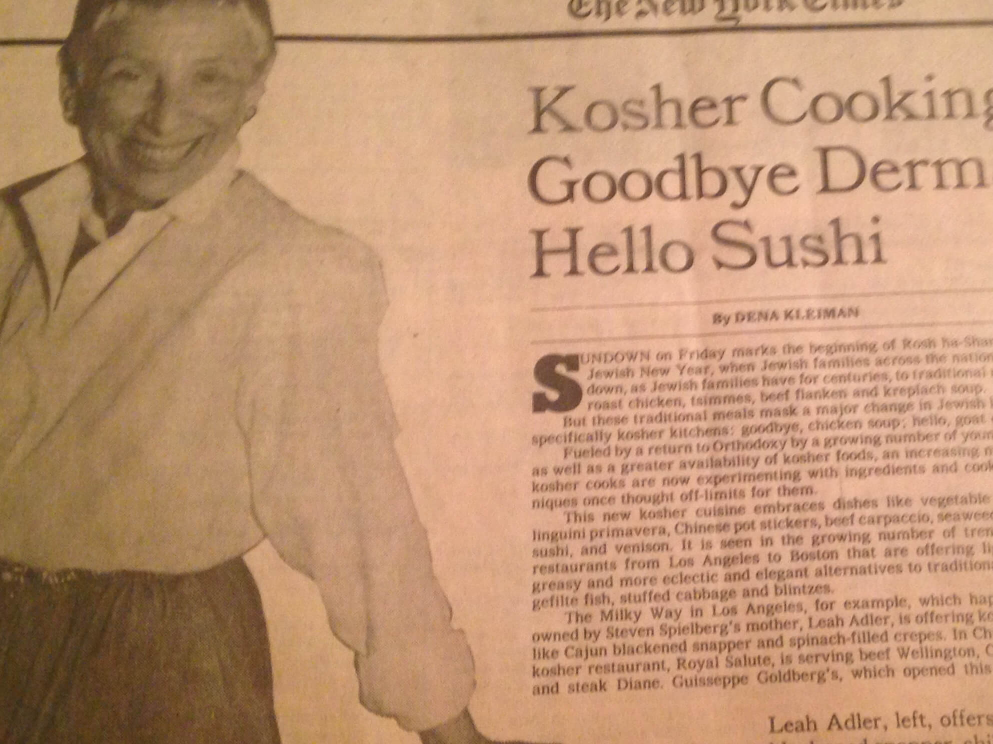 A newspaper article with the headline " kosher cooks goodbye dear hello sister."