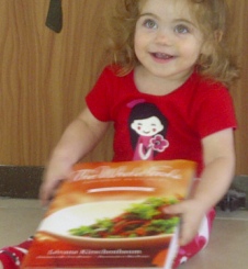 A little girl sitting on the floor holding onto a sandwich