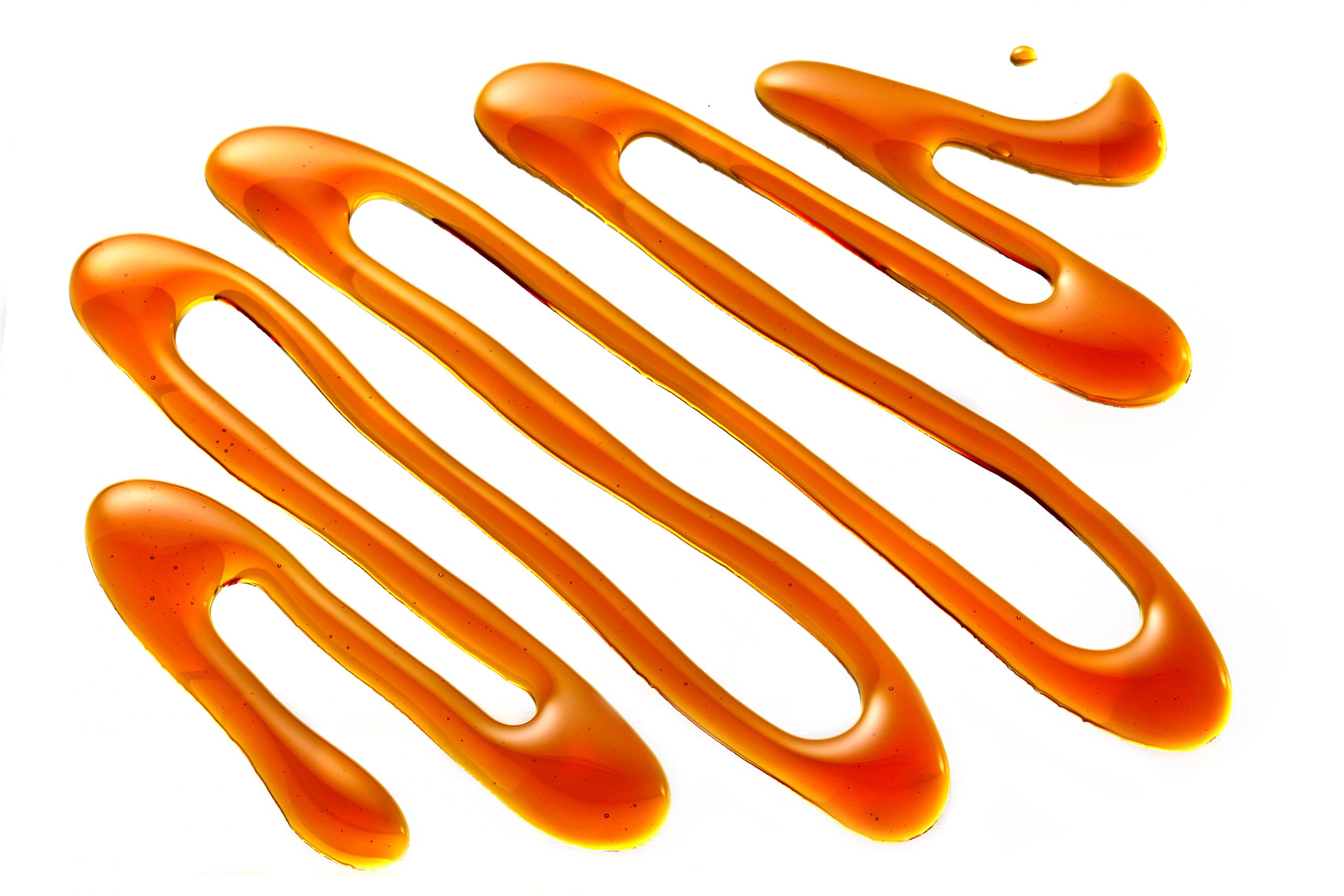 A close up of orange liquid drizzled on top of each other.