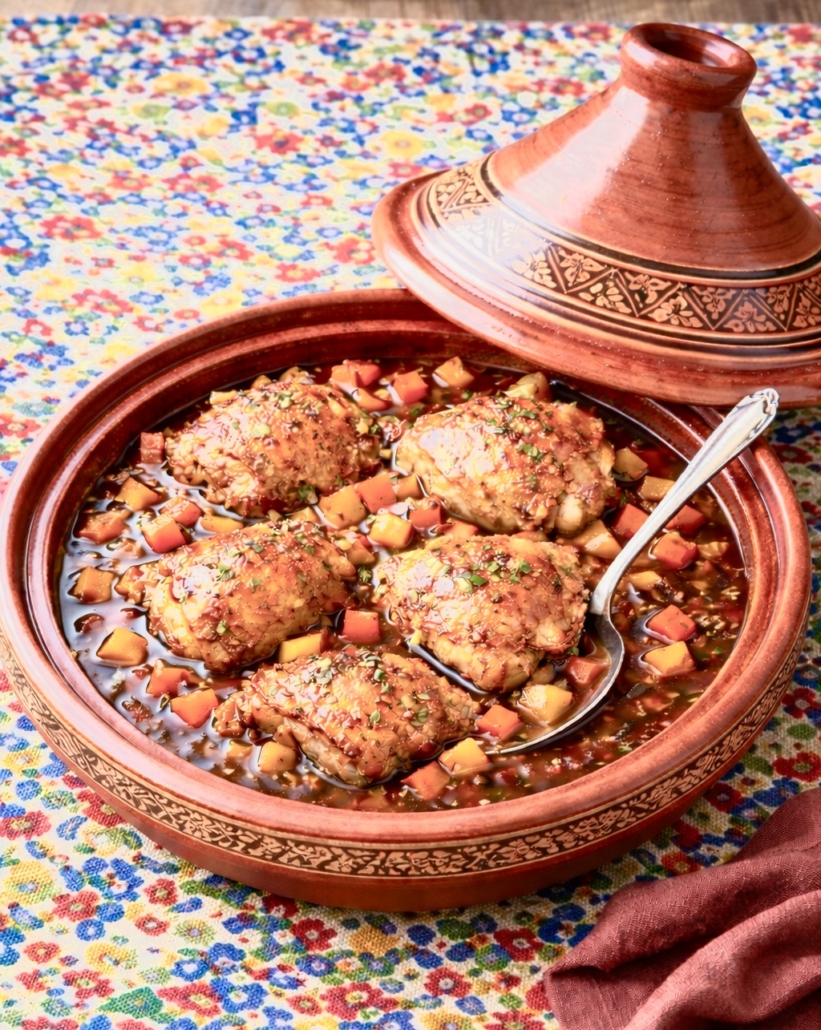 Chicken Carrots Turnips. This Tajine stars two humble roots: Carrots and Turnips. When combined in a tajine, carrots and turnips make a wonderful pairing, the robust turnip playing off the carrot’s natural sweetness. This contrast is further underscored by the contrasting warm-sharp seasonings.