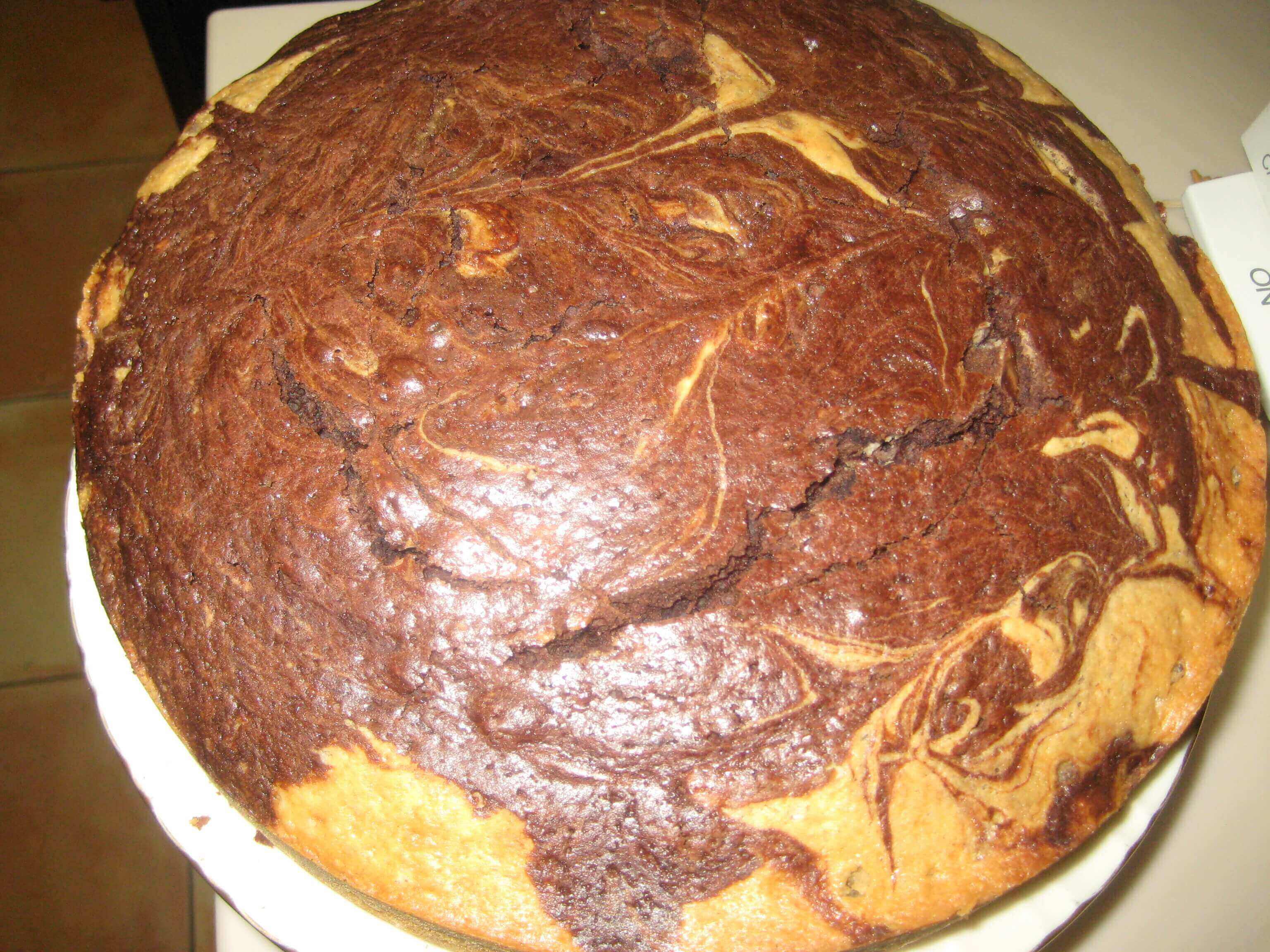 Marble cake with chocolate and vanilla swirls.