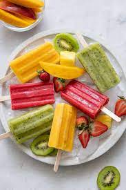 Assorted fruit popsicles with kiwi and strawberries