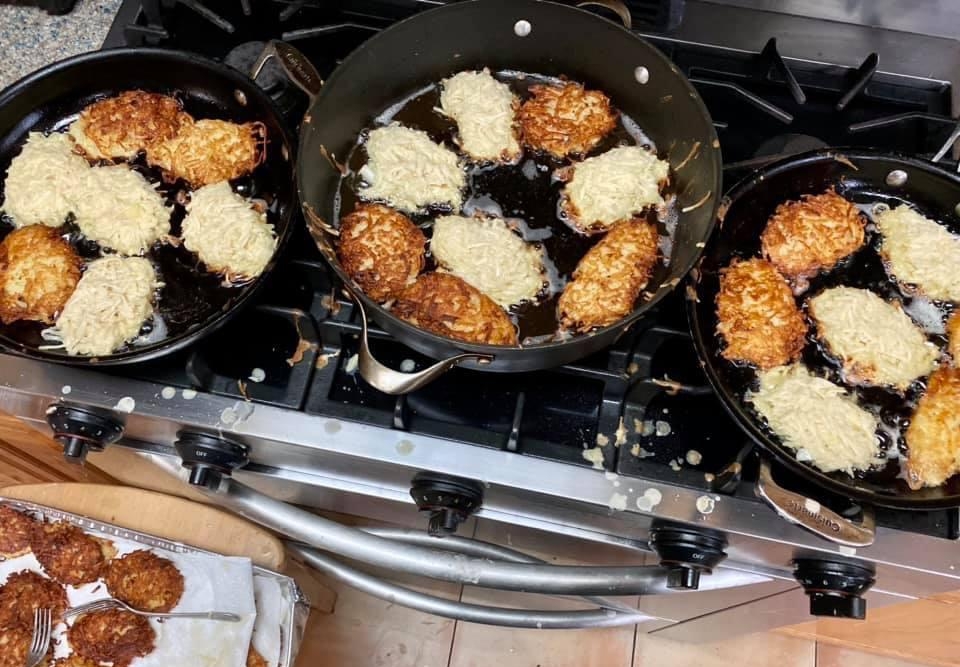 A bunch of food is cooking in the kitchen