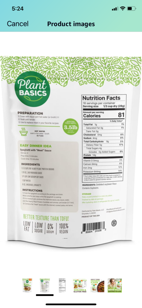 A bag of food with the back side labeled ” sport basics “.