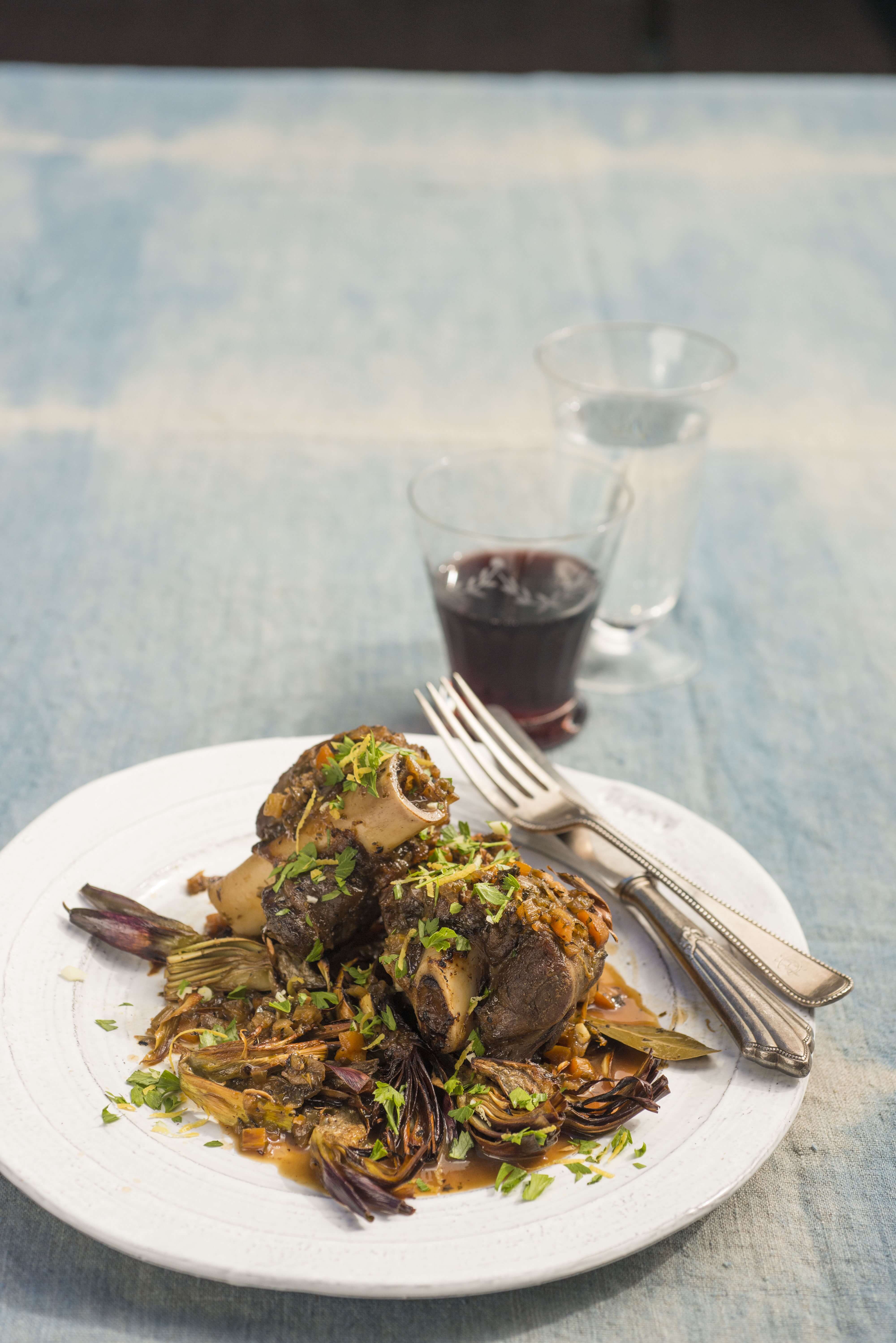 Roasted artichokes with herbs and red wine